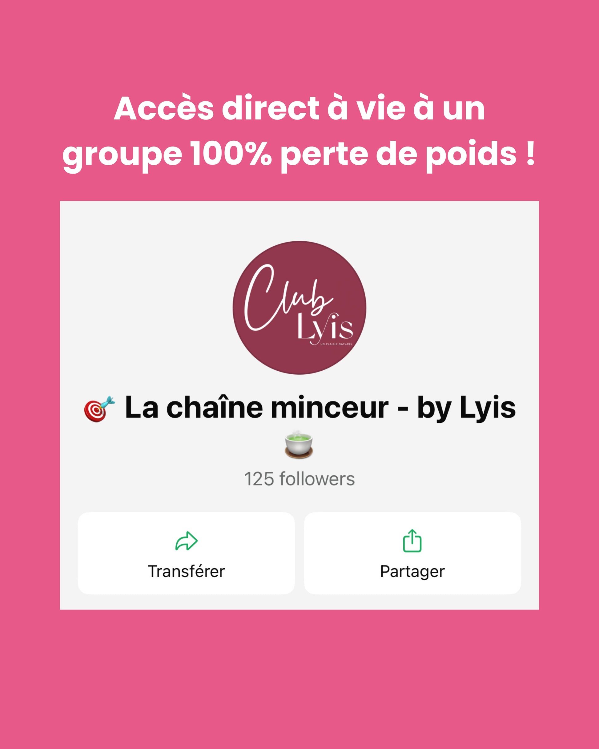 - Accès à un canal privé avec des informations , conseils , motivation sur la perte de poids